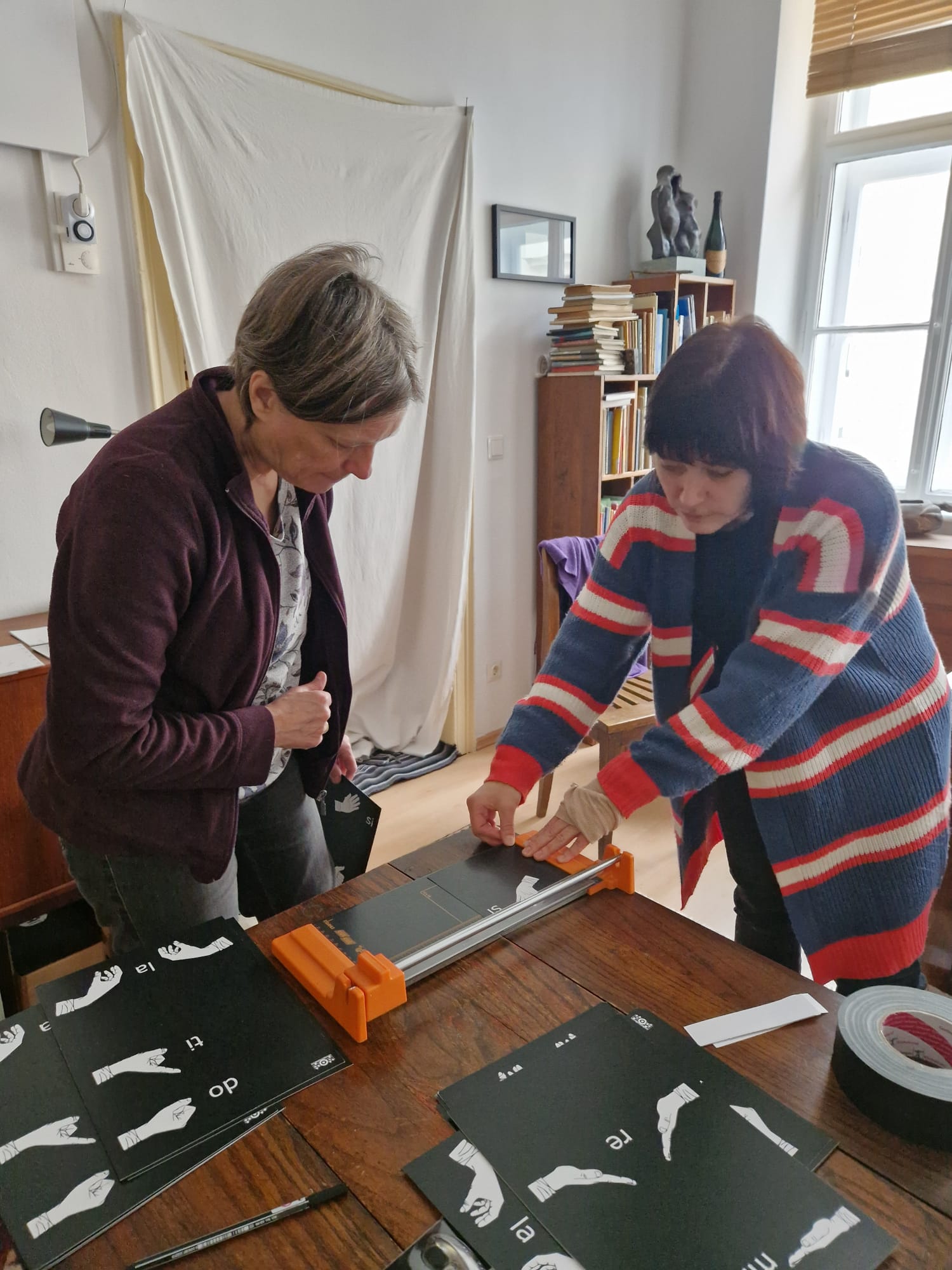 Wiltrud Hüttler-Grassl und ihre Kollegin Isabel Meyer zauberten in ihrer Freizeit in zweiwöchiger Arbeit 30 Notenlegemappen für Wiltruds ELEMU-Unterrichte in den Volksschulen Wiens. Jedes Stück ist ein Unikat geworden und erfreut nicht nur die Lehrerin, auch die Kinder lieben die musikpädagogische Arbeit mit diesem nachhaltigen und praktischen Lernmaterial.