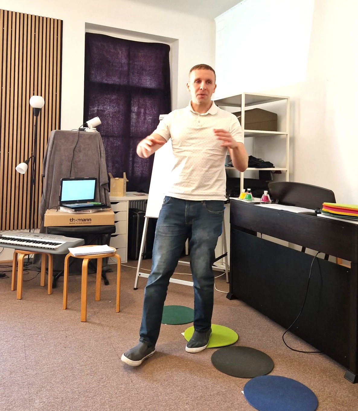 Hauko Wessel gestaltete einen Workshop für Interessent:innen zur Vertiefung der ersten Kenntnisse der Relativen Solmisation, den die Teilnehmer:innen als sehr wertvoll und hilfreich empfanden.